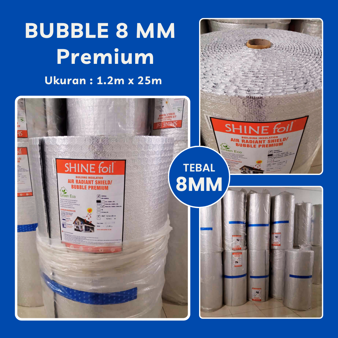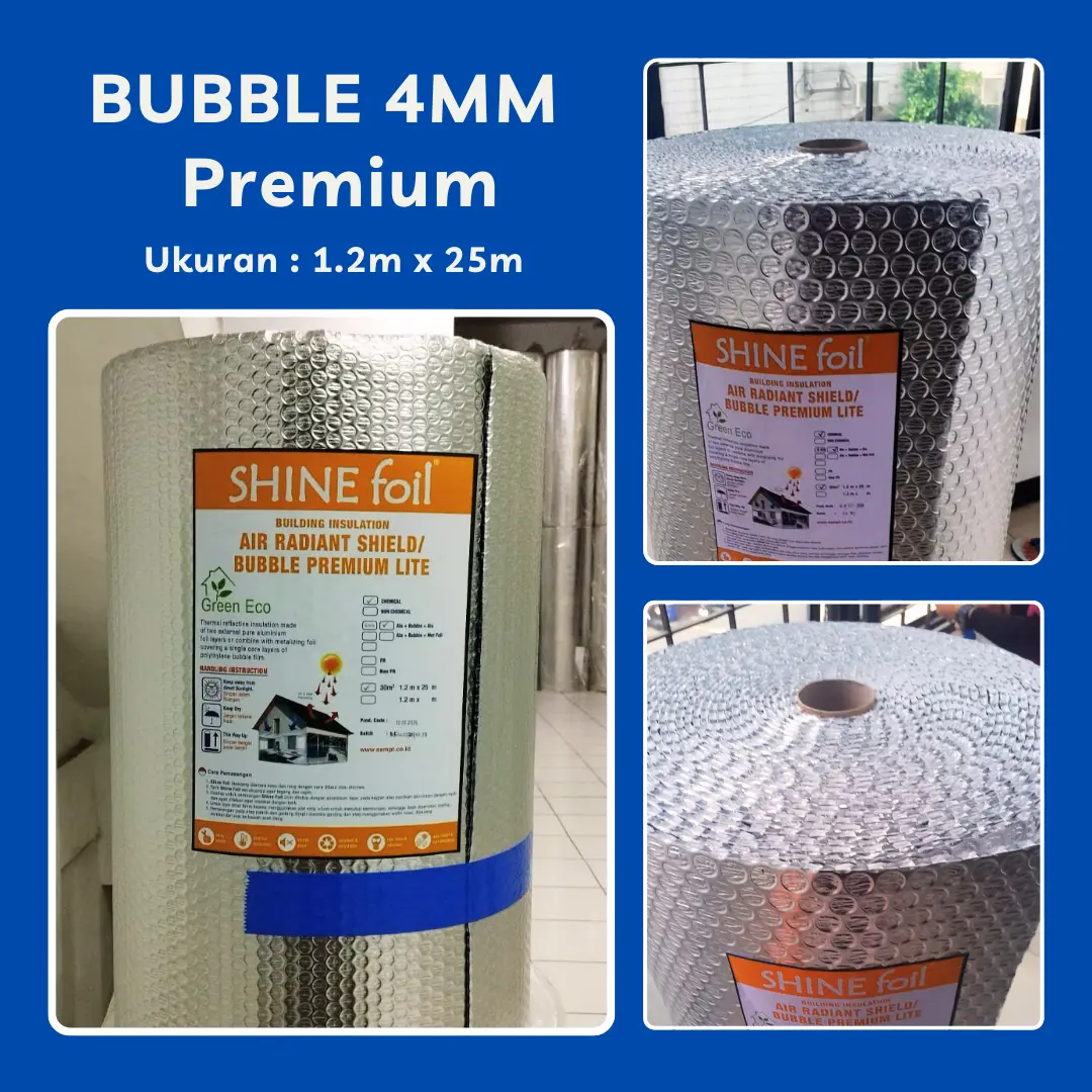 Bubble foil dengan kualitas premium dilapisi alumunium murni di kedua sisi nya sehingga sangat bagus untuk atap.